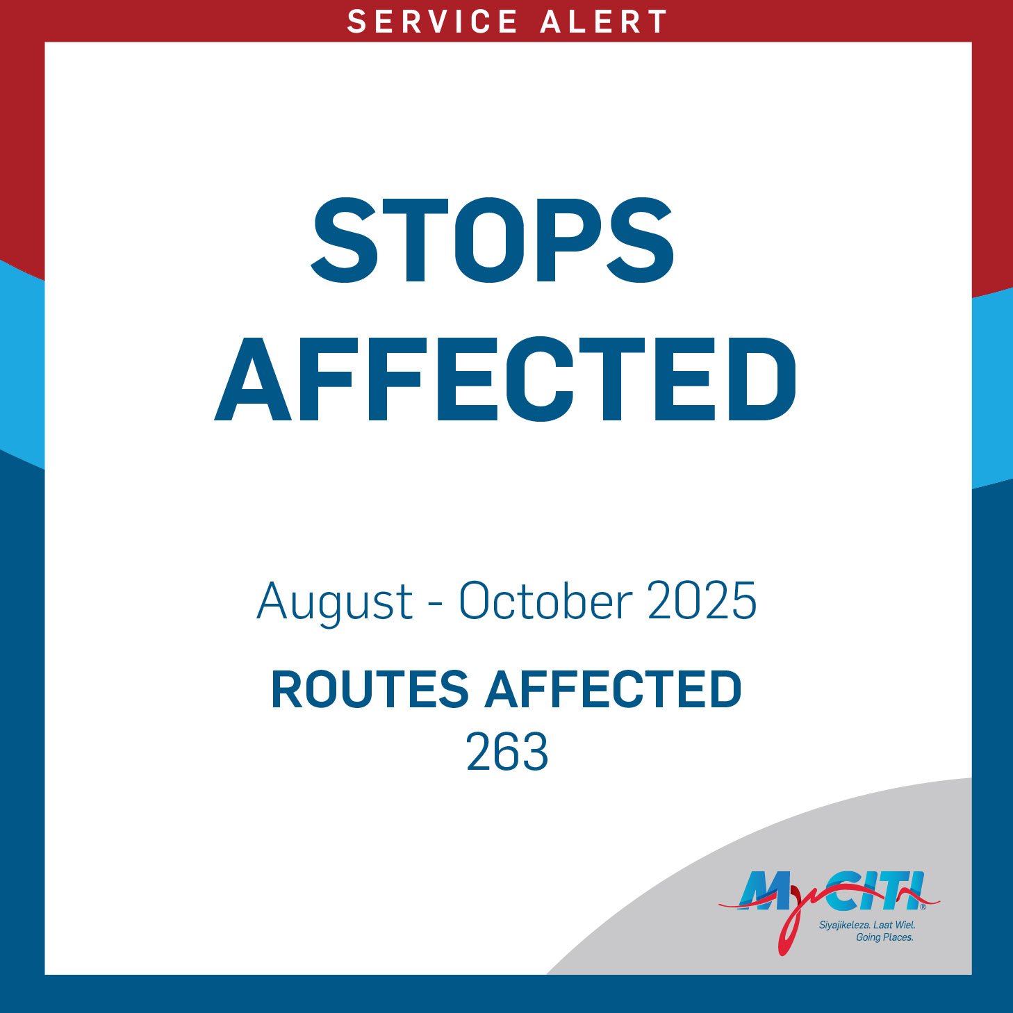 The road construction project affecting route 236 in Atlantis has been extended to 31 October 2025. Several stops will be affected during this time.