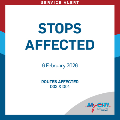 Passengers in Mitchells Plain are advised of temporary changes to stop locations on AZ Berman Drive in order to accommodate the next phase of roadworks. The following bus stops on routes D03 and D04 will be impacted from Friday 6 February 2026 for approximately one month: