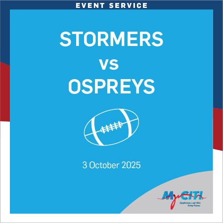 A free shuttle service will be operated by MyCiTi on Friday 3 October 2025 for fans attending the Stormers vs Ospreys match at the DHL Stadium.