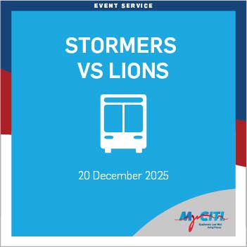A shuttle service will be operated by MyCiTi on Saturday 20 December 2025 for fans attending the Stormers vs Lions rugby match at the DHL Stadium.